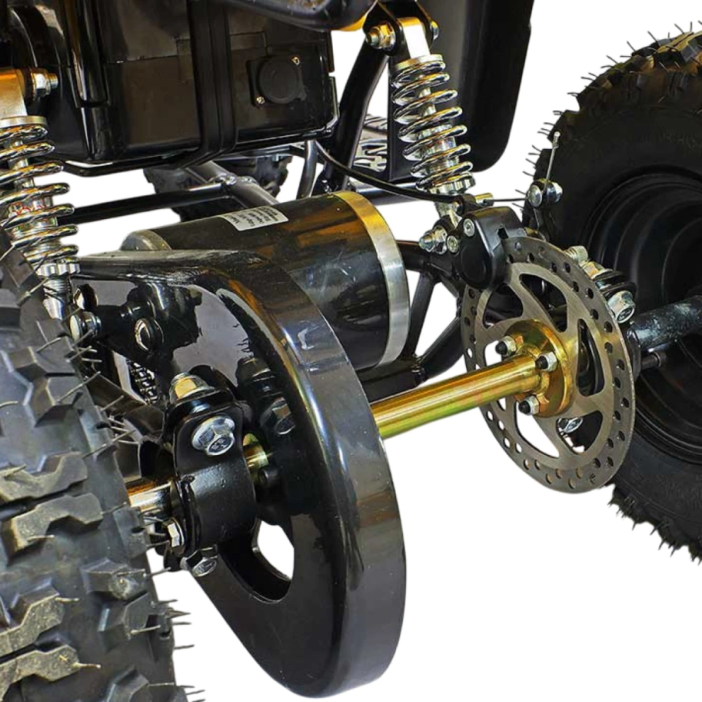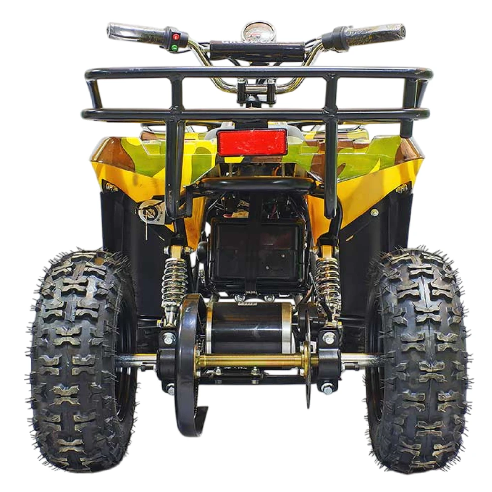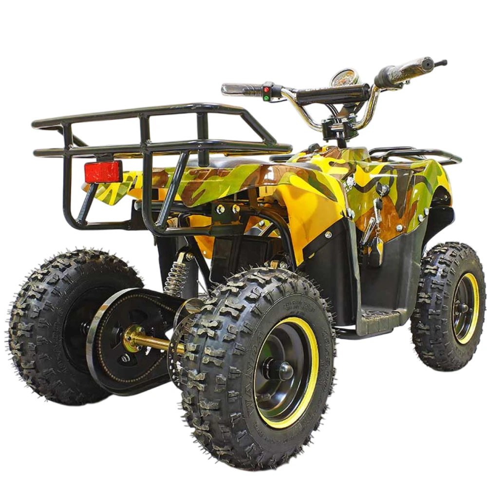 При мощности двигателя 800 Вт способен развивать скорость до 20 км/час. Объемные легко сцепляемые с поверхностью колеса по внешнему виду напоминают вездеходные. Квадроцикл рассчитан на детей от 3 до 7 лет, для езды по городской местности и парковой зоне. оснащен комфортными мягкими сиденьями, прост в управлении и обслуживании.