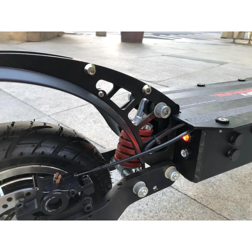 Электросамокат WS-Baikal 2400W 52V25ah - надежная полноприводная модель для передвижения по городским улицам и пересеченной местности. Два мотор-колеса гарантируют плавный разгон до 57 км/час, позволяя легко преодолевать подъемы, спуски и небольшие препятствия на пути. Качественные пружинные амортизаторы обеспечивают плавность хода и комфорт водителя даже при движении по грунтовой дороге или плитам со стыками. Гидравлические тормоза чутко реагируют на команду водителя и способны быстро остановить транспортное средство в экстренной ситуации, что особенно важно при высокоскоростной езде. Данная модель оснащена бортовым компьютером, с помощью которого пользователь может установить индивидуальные настройки. Данные бортового компьютера отображаются на электронном дисплее, позволяя водителю оценивать основные параметры движения. Полного заряда аккумулятора хватит на 75 км пути, что позволяет не беспокоиться о подзарядке в течение всего дня. Для дальних поездок производители предусмотрели удобное мягкое сиденье. За безопасность движения в темное время суток отвечает мощная передняя фара, задние габаритные огни со стоп-сигналом и светодиодная подсветка на деке. Электросамокат WS-Baikal 2400W обладает привлекательным современным дизайном и достойными техническими характеристиками, которые подарят свободу передвижения и удовольствие от каждой поездки.