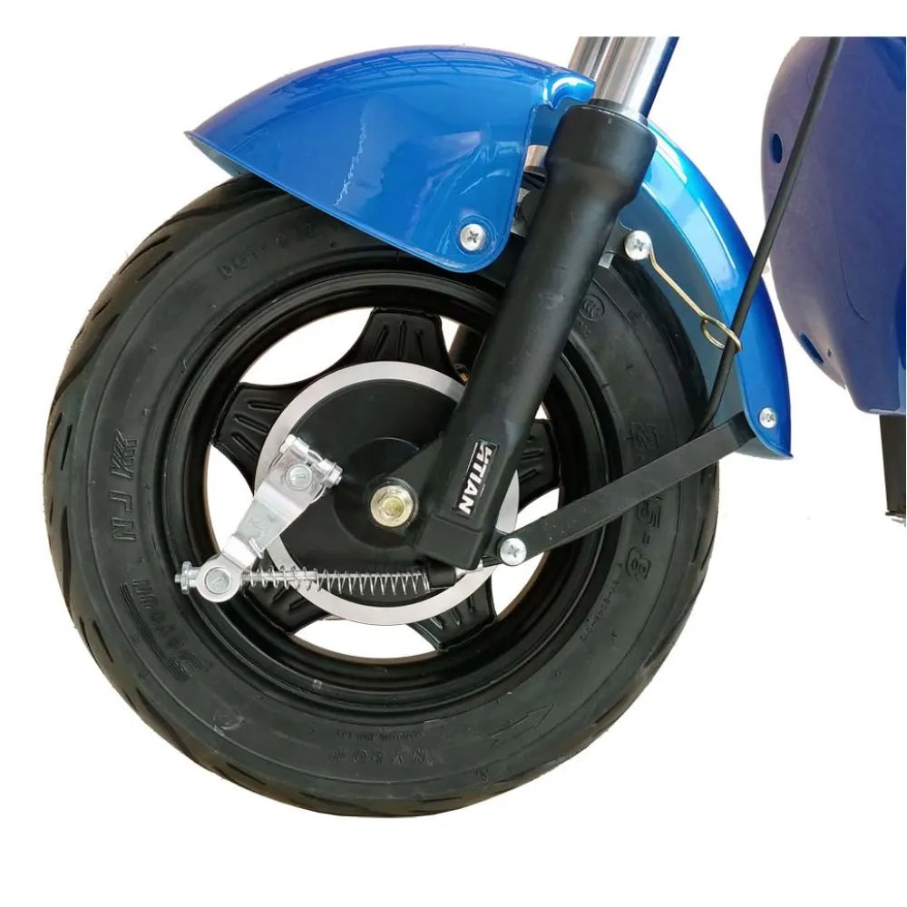 Удобное сидение с возможностью установки дополнительного делают поездки еще более комфортными. Бесколлекторный движок (500 Вт) при максимальной нагрузке в 150 кг с легкостью выдает 35 км/час. Батарея Lilon надежно зафиксирована под рамой для экономии полезного пространства. Емкость (20 Ач напряжение 48 В) АКБ позволяет пройти до 50 км на одном заряде. Дуэт из дисковых и барабанных механических тормозов обеспечивают полную защиту райдера на дороге. Вилка оборудована подвеской на амортизаторах для смягчения наезда на ямы и кочки. Малогабаритные размеры (1550*620*1050 см) и малый вес модели (55 кг) дает возможность пользователю прекрасно маневрировать в плотном городском потоке. Стальная рама имеет особую прочность материала. Корзинка на руле надежно закреплена и имеет хорошую вместительность. Райдер может совершать покупки и перевозить грузы с большим комфортом.