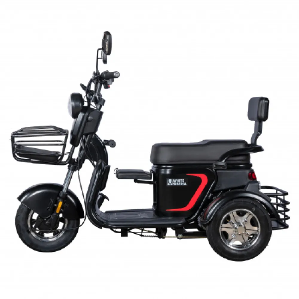 WHITE SIBERIA SIBTRIKE L 2000W – лидер продаж этого сезона. Удобный практичный электрический трицикл понравился семейным пользователям. Первое, что бросается в глаза, степень комфорта. Техника оснащена объемным сиденьем, одно из которых можно использовать в качестве пассажирского.