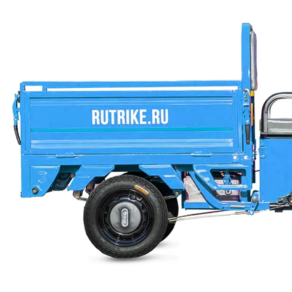 Грузовой электротрицикл Rutrike Амулет 1100 60V650W в синем цвете с мощным мотором, большим пробегом и удобным багажным отсеком является идеальным решением для тех, кто ищет надежное и эффективное средство для перевозки грузов на небольшие расстояния.