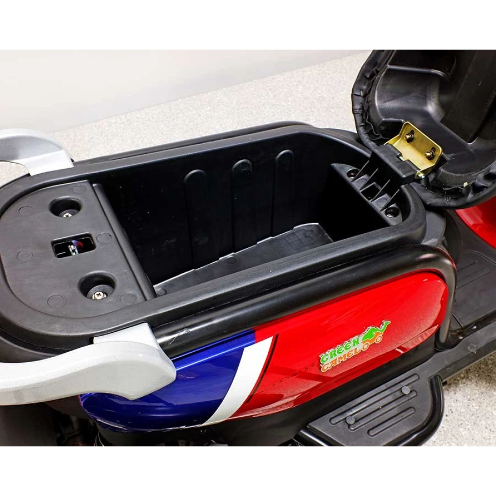 Дифференцированный мотор мощностью 500 Вт достигает максимальных скоростных показателей в 25 км/час за короткое время. Питание на двигатель подается гелевым аккумулятором емкостью 20 Ач с напряжением 60 В. Пользователь сможет пройти 60 км на одном заряде, а ресурса батареи хватит на 700 циклов заряда-разряда. Рулевая стойка имеет правильные эргономические характеристики и угол наклона, который позволит долго находиться в пути и не уставать. Модель оснащена широким сидением и удобной спинкой для комфортного передвижения. Вилка с воздушными амортизаторами позволяет преодолевать дорожные неровности легко и просто.