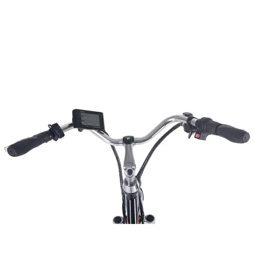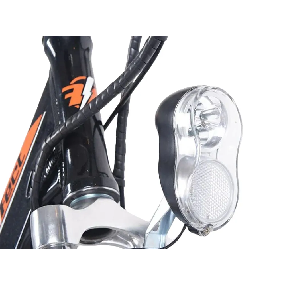 Электродвижок 350 Вт с задним приводом цепного типа разгоняет технику до 35 км/час. Батарея размещена на багажнике для экономии пространства и позволяет пройти до 30 км пути без подзарядки. Спортивное сидение имеет специальную систему регулировки. Электровелосипед имеет 28 дюймовые колеса для отличного наката. Заказать модель быстро позволит телефонный звонок менеджеру или сообщение в онлайн-чате.