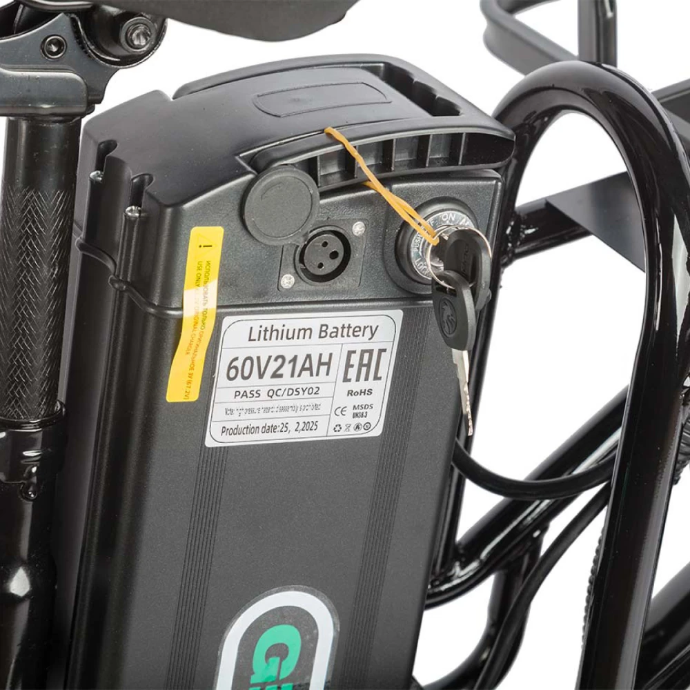 Электровелосипед Eltreco Gelbert Khan Monster 1 – это современное средство передвижения, сочетающее в себе продуманную конструкцию, передовые технологии и стильный дизайн для уверенных городских и пригородных поездок.Модель оснащена передним и задним амортизаторами, которые эффективно смягчают неровности дороги, обеспечивая плавность хода и комфорт даже на пересеченной местности. При заявленном максимальном пробеге до 100 км на одном заряде этот велосипед подходит для длительных поездок – конечно, реальные показатели зависят от веса райдера, рельефа местности, погодных условий и температуры окружающей среды.Безопасность обеспечивается за счет дисковых гидравлических тормозов, которые гарантируют надежное и своевременное торможение в любых ситуациях. Легкий вес в 57 кг позволяет легко маневрировать, а максимальная нагрузка до 150 кг делает модель универсальной для разных категорий пользователей.Двигатель мощностью 240 W, размещенный в задней части, обеспечивает эффективное ускорение и оптимальное распределение энергии, что способствует стабильной работе в условиях городской среды. Электровелосипед оборудован аккумулятором с емкостью 21 Ah и рабочим напряжением 60 V, что гарантирует долгий срок службы батареи и надежную работу даже на длинных маршрутах.Габариты в собранном состоянии – 1700×1150×800 мм – обеспечивают удобное расположение для водителя, а использование качественной стали в конструкции гарантирует долговечность и надежность всей системы. Дополнительное оснащение включает зеркала заднего вида, которые повышают безопасность, а встроенные передние и задние габаритные фары обеспечивают отличную видимость в условиях недостаточной освещенности.Стоит отметить, что данная модель не является складной, что подчеркивает ее прочную и стабильную конструкцию, рассчитанную на долгосрочную эксплуатацию. Электровелосипед Eltreco Gelbert Khan Monster 1 – это оптимальное решение для тех, кто ищет сочетание высоких технологий, надежности и комфорта в одном устройстве.