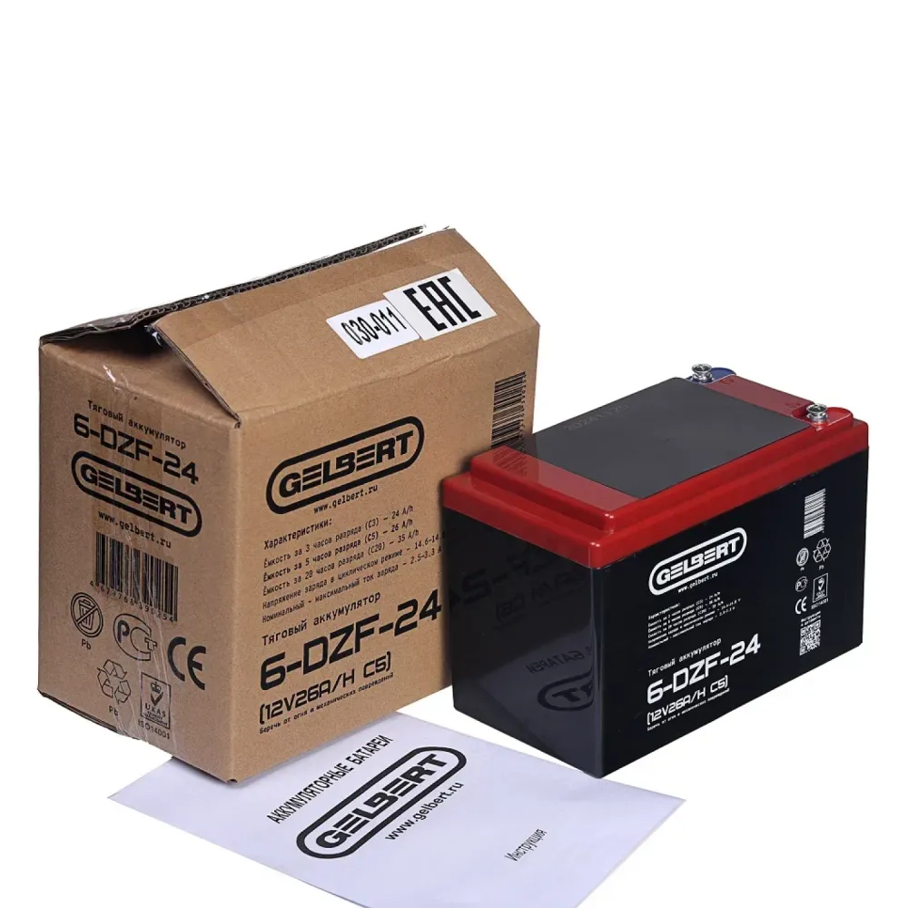 Тяговый аккумулятор Rutrike Gelbert 6-DZF-24 (12V26A/H C5) – это современное и надежное решение для грузовых трициклов и складской техники. С напряжением 12 В и ёмкостью 26 А·ч по схеме С5, данный аккумулятор гарантирует длительный срок службы и стабильное питание даже при интенсивном циклическом использовании. Его компактные размеры – 185 мм в длину, 105 мм в ширину и 130 мм в высоту, а также вес 6.95 кг позволяют легко интегрировать его в конструкцию различной техники. Продукт, входящий в серию DZF, отличается высокой эффективностью, надежной конструкцией и продуманной эргономикой, что делает его оптимальным выбором для профессионалов, ценящих качество и долговечность. Rutrike Gelbert 6-DZF-24 успешно справляется с задачами по тяговому питанию, обеспечивая бесперебойную работу оборудования в самых суровых условиях эксплуатации, будь то транспортировка грузов или работа в условиях склада. Благодаря инновационным технологиям производства и строгому контролю качества, этот аккумулятор заслуживает доверия и является надежной опорой для любой техники, требующей стабильного и мощного источника энергии.